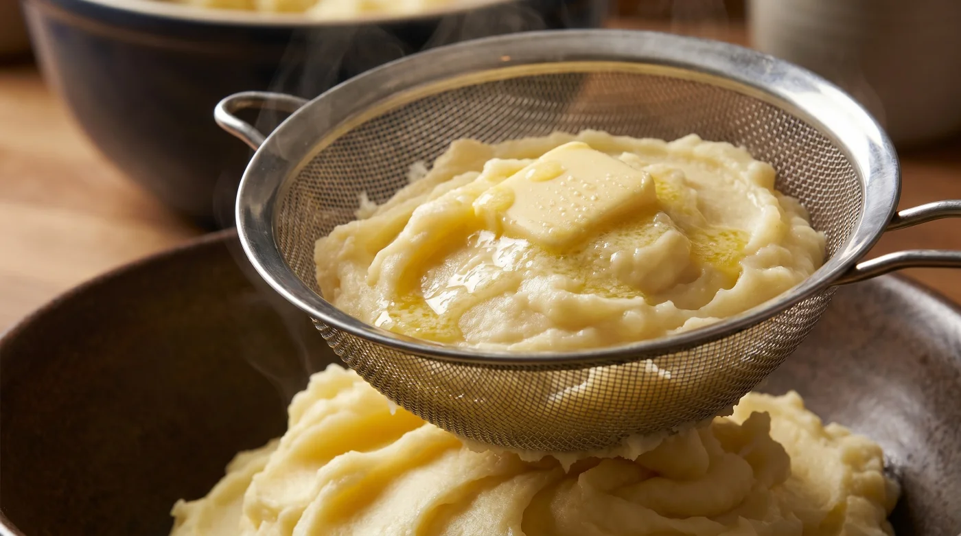 Quell’azione silenziosa e metodica produceva sotto la rete metallica una cascata di fili sottilissimi, fragili come lo zucchero filato del luna park. Questo passaggio attraverso il setaccio crea una setosità di lusso, trasformando un contorno tradizionalmente povero in un’esperienza degna di un ristorante stellato, senza dover aggiungere un singolo euro al costo complessivo della tua spesa settimanale.